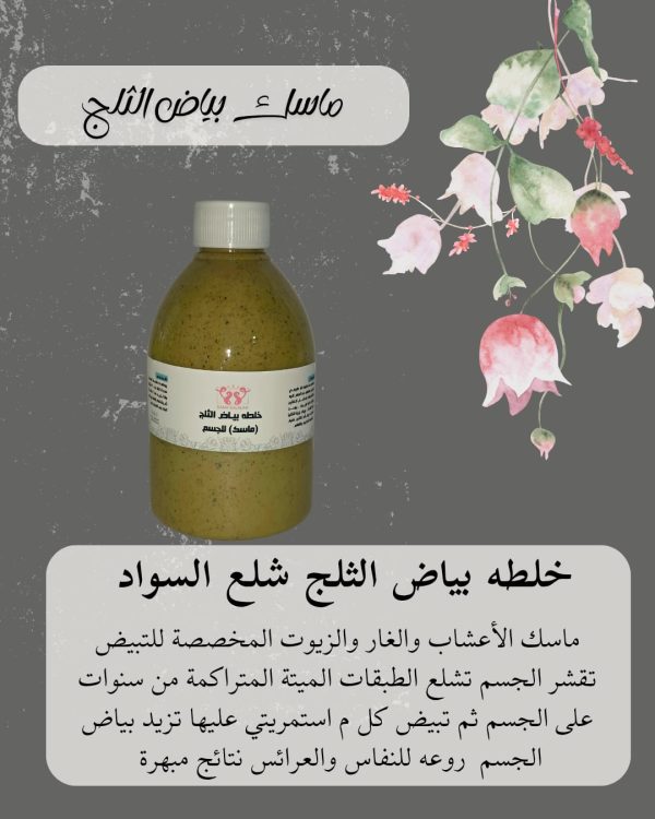 خلطه بياض الثلج شلع السواد ماسك الأعشاب والغار والزيوت المخصصة للتبيض تقشر الجسم تشلع الطبقات الميتة المتراكمة من سنوات على الجسم ثم تبيض كل م استمريتي عليها تزيد بياض الجسم روعه للنفاس والعرائس نتائج مبهرة