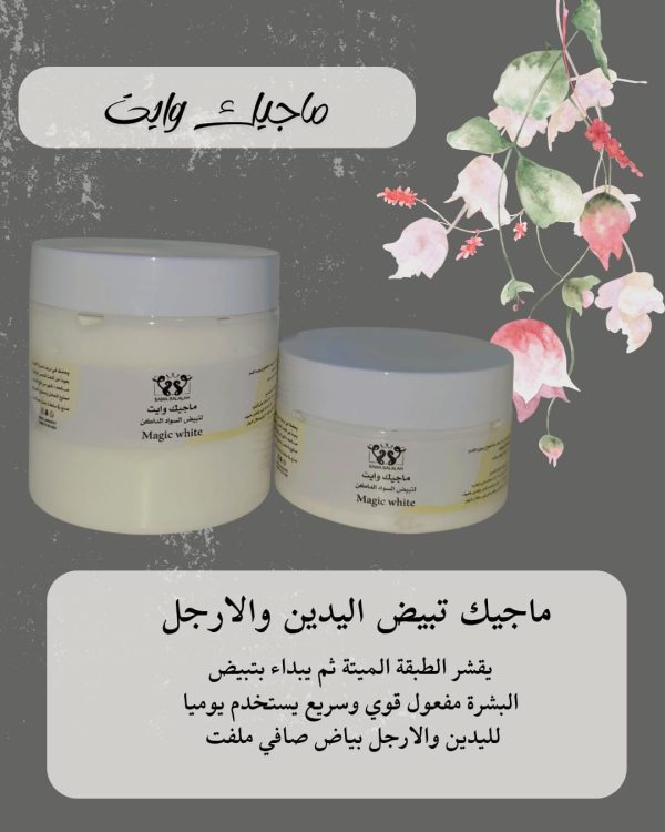 ماجيك تبيض اليدين والارجل، يقشر الطبقة الميتة ثم يبداء بتبييض البشرة مفعول قوي وسريع يستخدم يوميا لليدين والارجل بياض صافي ملفات